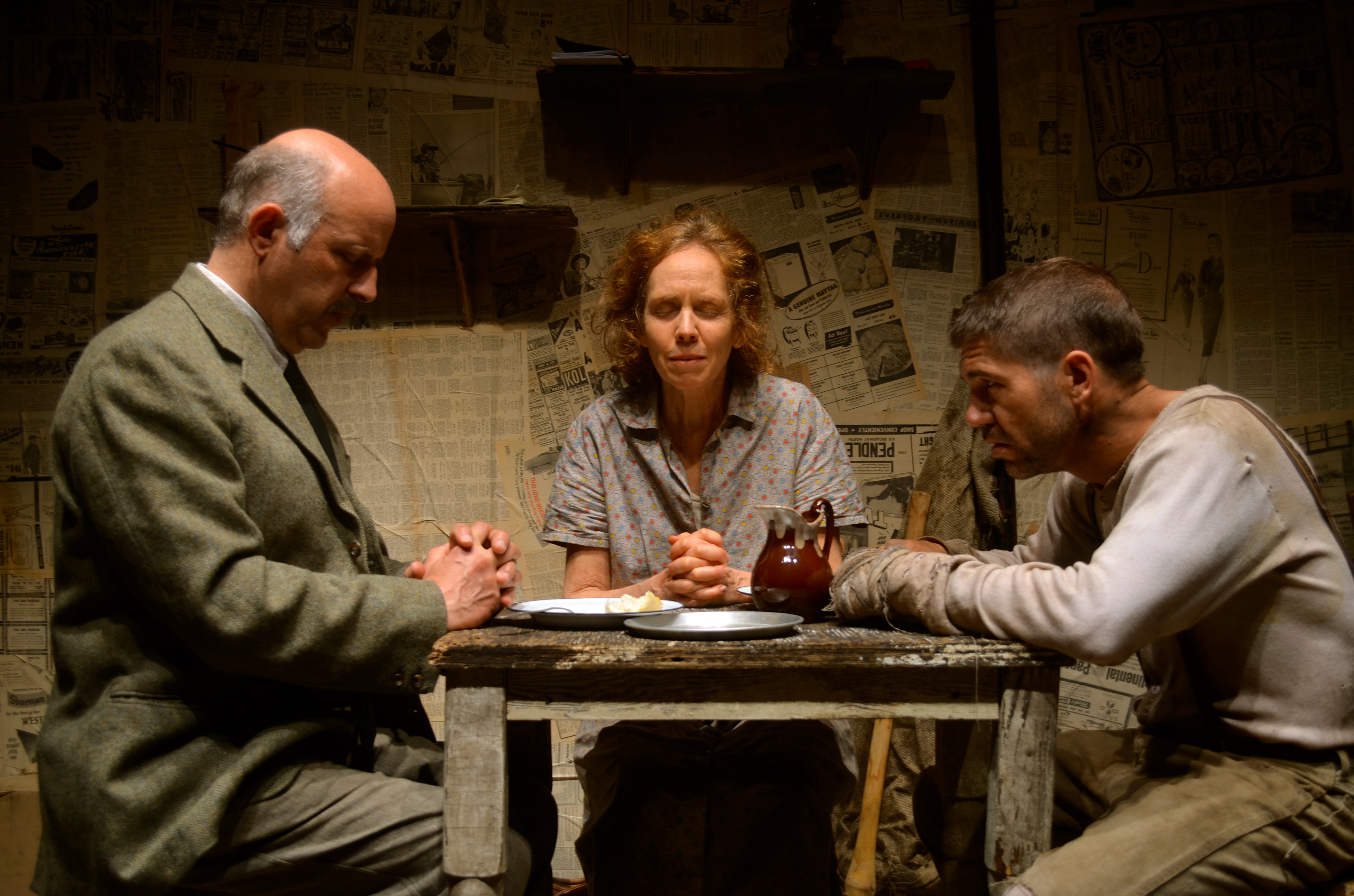 With snapshot-like black-outs punctuating each of Mud‘s brief 17 scenes, Lindsay Smith’s lighting — along with Smith’s sound design of elegant snippets from J.S. Bach — creates a subtle distancing effect that is crucial to Kazanjian’s production. For all the Dust Bowl social realism of its surfaces, Mud comes across not as documentary critique but as a dark modernist myth of struggle and abandon.